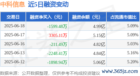本站消息,6月18日,中科信息(300678)融资买入4203.9万元,融资偿还5803.38万元通达配资,融资净卖出1599.48万元,融资余额4.99亿元。